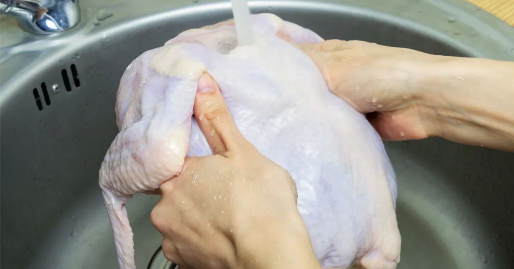 تجنب نشر البكتيريا: يؤكد خبراء الصحة أن غسل الدجاج يساهم في انتشار بكتيريا السالمونيلا في المطبخ عبر تناثر الماء.