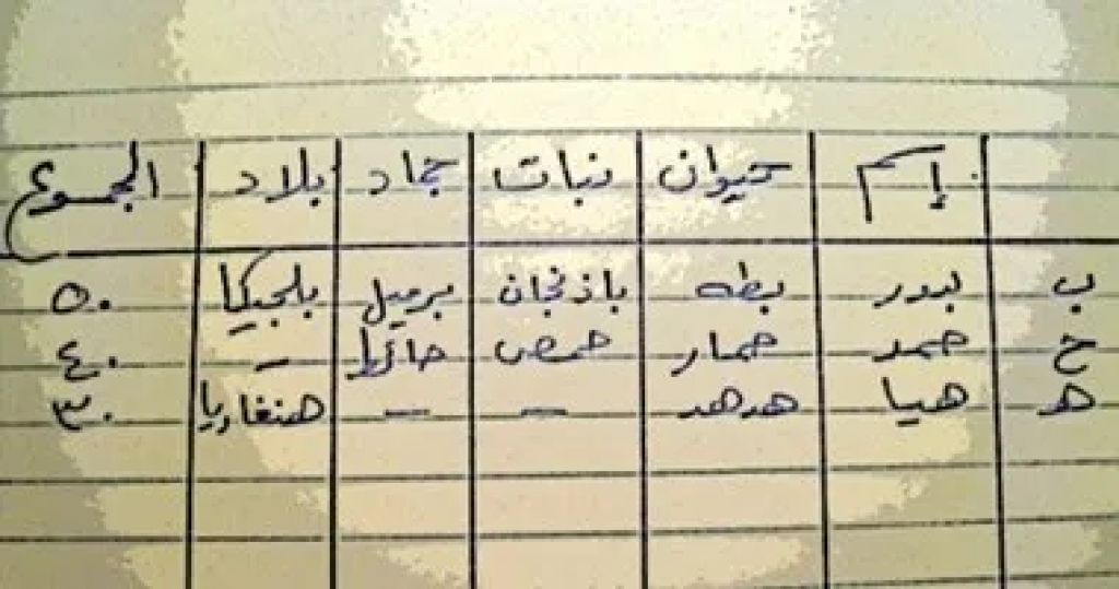 ولد ، بنت ، جماد ، حيوان ، نبات .